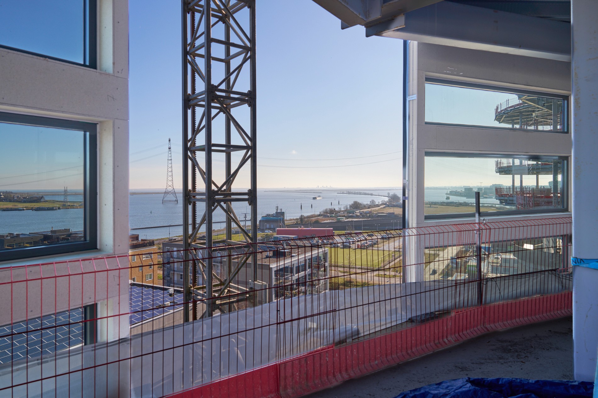 Silos is building bright, flexible office floors with glass all around. The facade is going in now, and the interior fit-out is progressing in parallel.